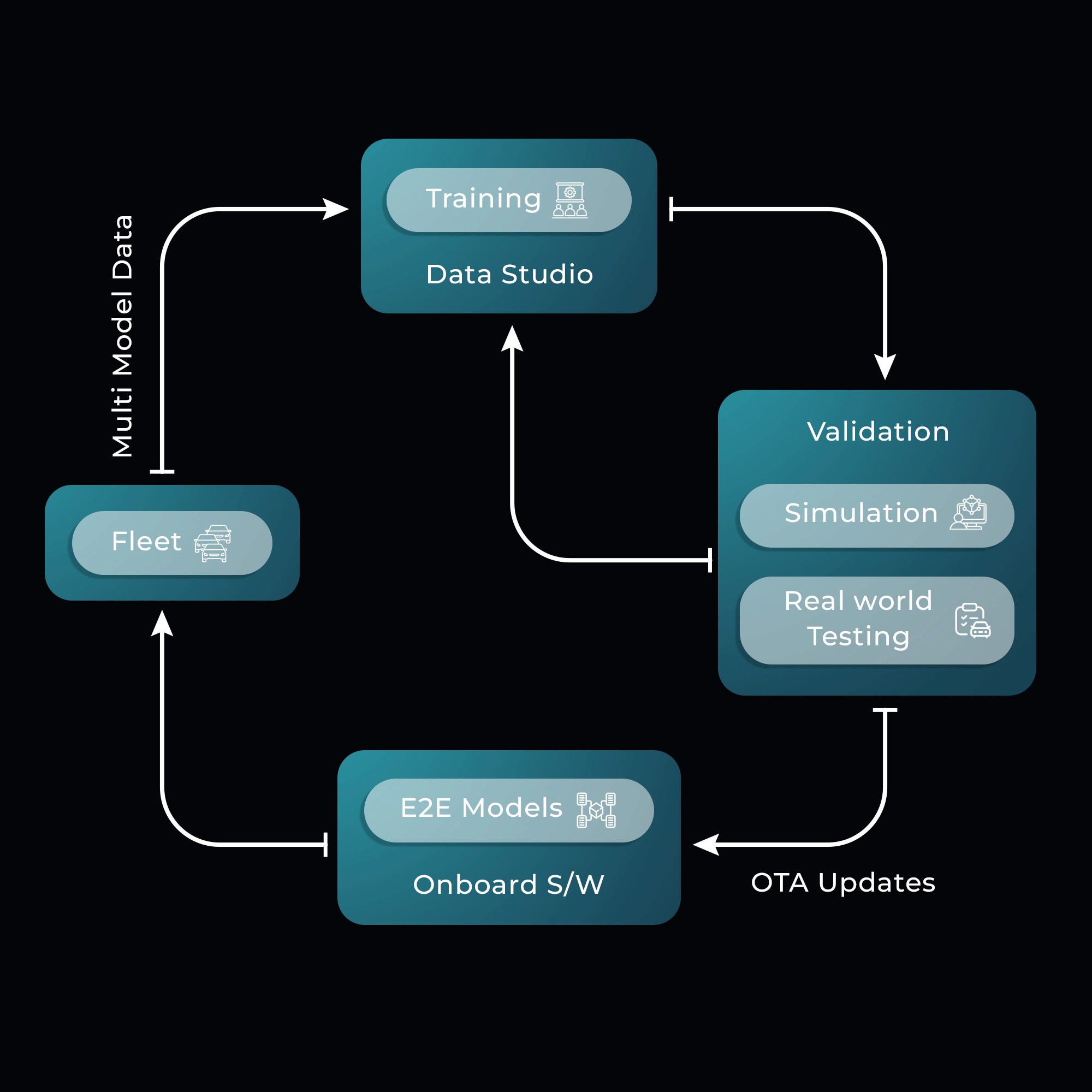 We are developing a comprehensive suite that includes foundational driving models, training frameworks, on-board software, safety mechanisms, APIs, data platform and testing framework. Having a bespoke stack enables us to take advantage of advanced engineering technologies to develop, test and productionize foundational models for ADAS in the most safe and scalable manner.